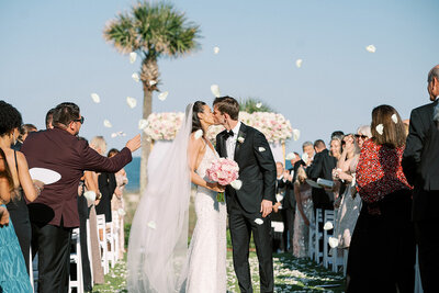 After traveling back from the church, your guests are welcomed to your reception at Isleworth with beautiful cocktail hour while watching the sunset.